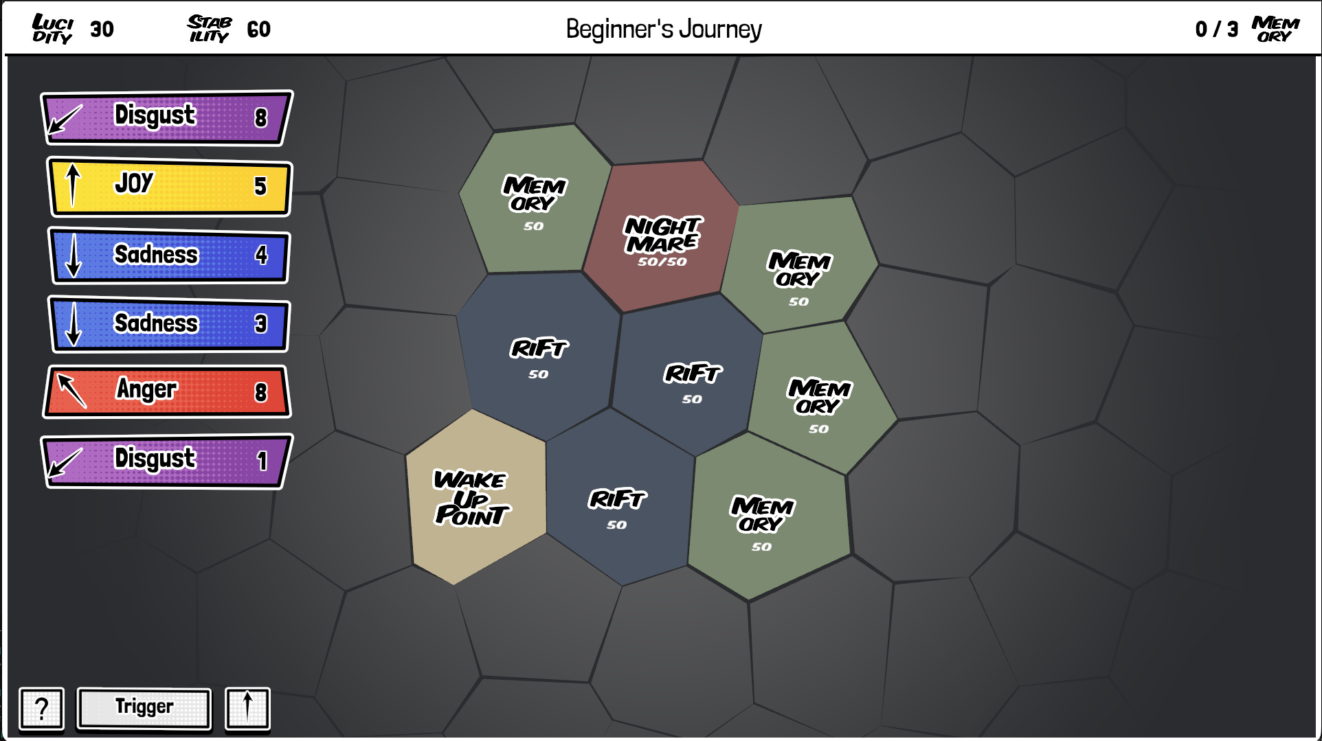 Note: Your emotional output floods the entire layer. Damage is distributed among all Nightmares, not targeted at just one. A powerful hand might be safe when fighting a crowd, but dangerous against a lone enemy.