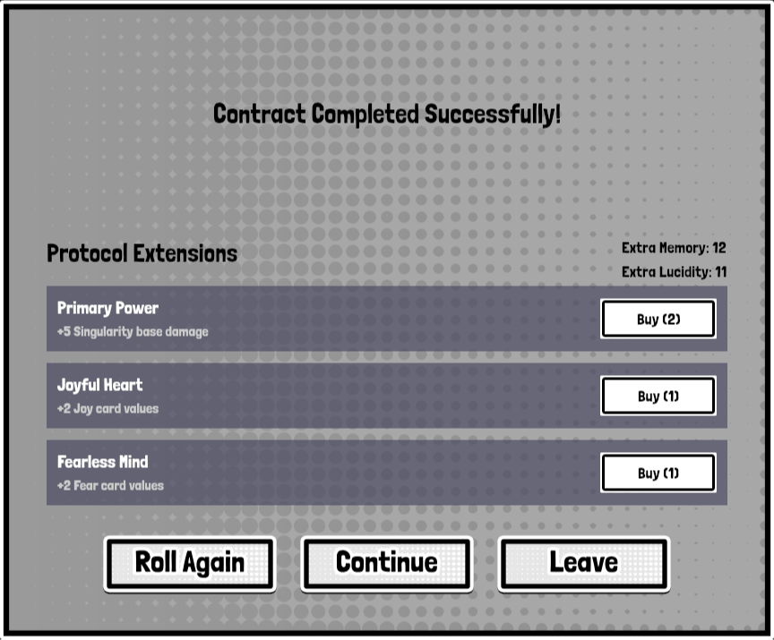 Contracts are your missions, each has a specific conditions like a specific amount of lucidity you could have during the hack, stability threshold of the host mind, and more importantly the number of required memories you need to collect before wakeup.